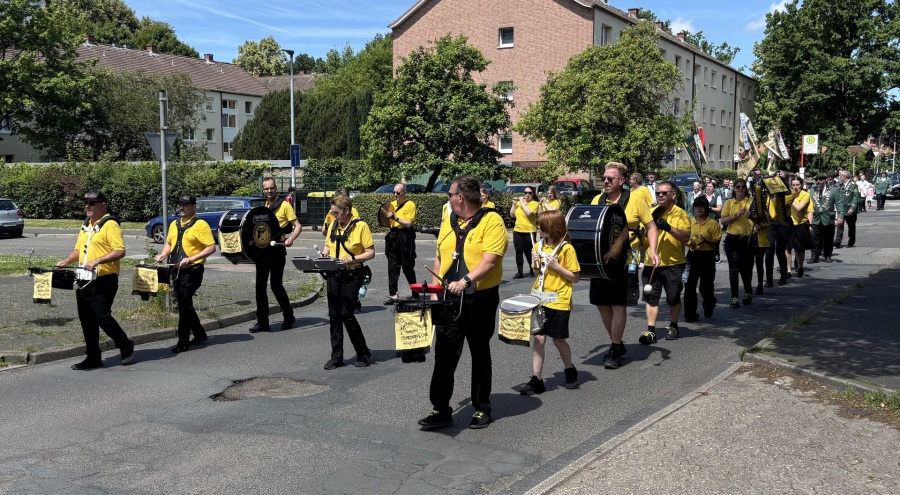 Von dort startete dann um 13 Uhr der Schützenumzug mit Spielmannszug und mehreren Schützenvereinen. Der Umzug endete um ca. 14 Uhr am Schützenhaus in der Loddenallee. Der Verein, der Spielmannszug und die Gäste haben sich sehr darüber gefreut, dass viele Bürgerinnen und Bürger am Straßenrand den Umzug begleitet haben.